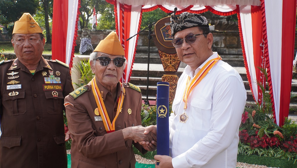 Bupati Buleleng I Nyoman Sutjidra menerima penghargaan Satya Lencana dari Dewan Pengurus Pusat Legiun Verteran Republik Indonesia (DPP LVRI) atas perhatian dan dukungan yang diberikan kepada veteran Buleleng.